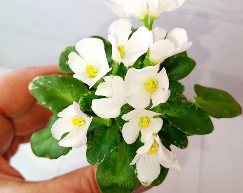Белые колокольчики на аккуратной розетке с пестрой гёрл листвой.