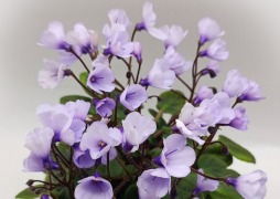 Простые пурпурно-синие цветы с более темным глазком; ровная средне-зеленая листва. Мини трейлер